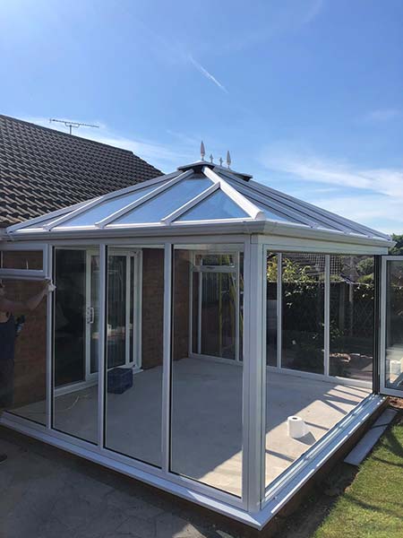 Incorporating 70mm PVCu (uPVC) frames in a choice of colours and a choice of either 35mm multi-chambered polycarbonate roof panels in either Clear, Bronze, Opal or Heatguard ™ or 25mm glass roof panels.